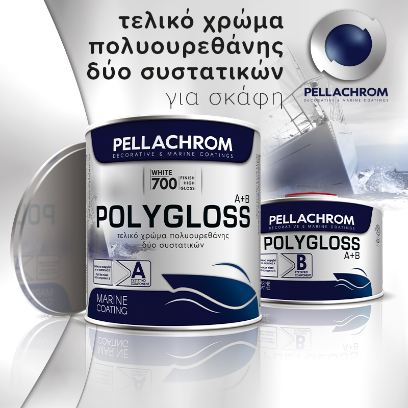 Το POLYGLOSS είναι υψηλής ποιότητας τελικό χρώμα πολυουρεθάνης 2 συστατικών εξαιρετικά μεγάλης αντοχής σε έντονες καιρικές συνθήκες. Δίνει επιφάνεια που διατηρεί την φωτεινότητά της και αντιστέκεται στο κιτρίνισμα με την πάροδο του χρόνου. Παρουσιάζει εξαιρετική στιλπνότητα την οποία διατηρεί για πολλά χρόνια. Χαρακτηρίζεται από μεγάλη σκληρότητα, ελαστικότητα και αντοχή σε χάραξη και χτυπήματα, δίνοντας μια τελική επιφάνεια με άψογο φινίρισμα. Λόγω της σύνθεσης του δίνει άριστα αποτελέσματα σε κάθε επιφάνεια. Ιδανικό προϊόν για εξωτερική και εσωτερική χρήση υψηλών απαιτήσεων. Ιδανικό για όλα τα σκάφη.