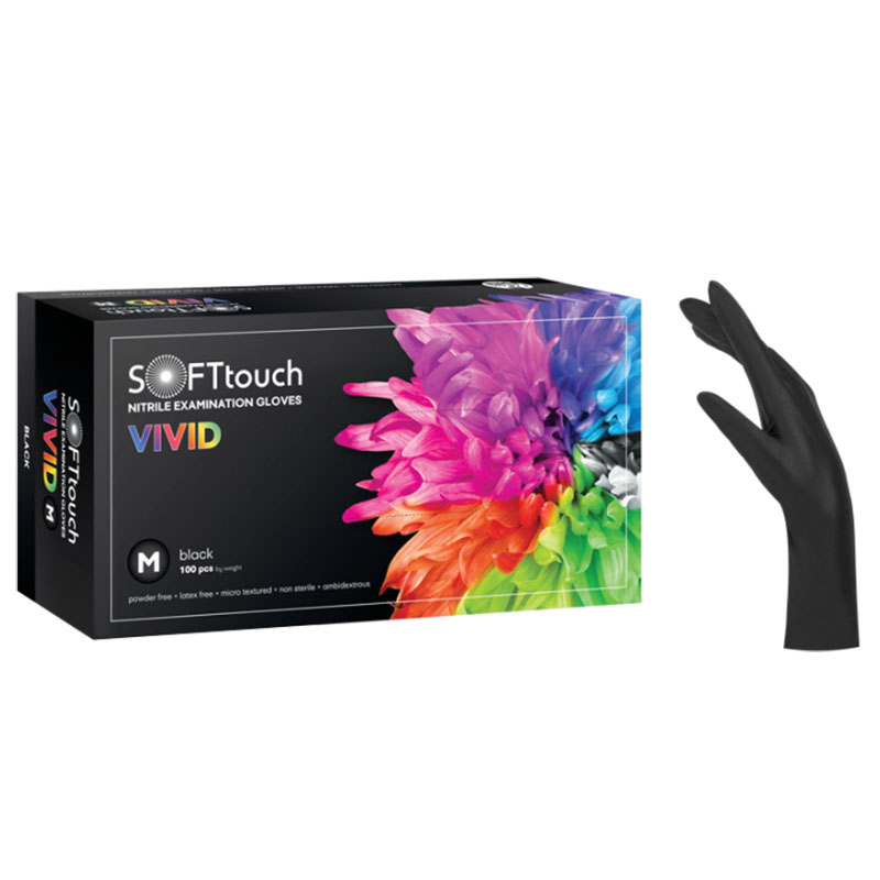 Γάντια Νιτριλίου Μιας Χρήσης Soft-Care Vivid Μαύρα 100τμχ