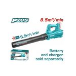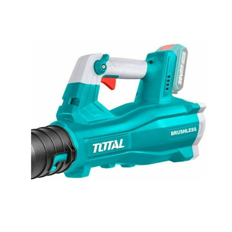 Φυσητήρας χειρός της εταιρείας Total, με λειτουργία μπαταρίας 20V (δεν περιλαμβάνεται). Χρησιμοποιείται για καθαρισμό εξωτερικού χώρου όπως κήπος, δρόμος, πάρκο και βεράντα από πεσμένα φύλλα, υπολείμματα φυτοφραχτών ή του γκαζόν και άλλου είδους ρυπών που μπορούν να αφαιρεθούν με εφαρμογή αέρα χάρη στην ευκολία πρόσβασης που διαθέτει σε δύσβατα σημεία και γωνίες. Ενδείκνυται για ερασιτεχνική και επαγγελματική χρήση λόγω της αυτονομίας σε τροφοδοσία.