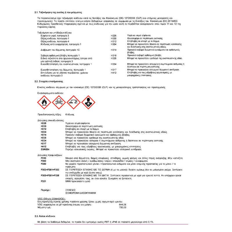 - Στέγνωμα: αφή 2-3 ώρες / επαναβαφή 24 ώρες
