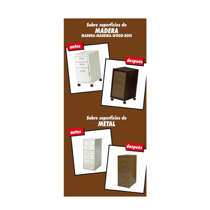 Το Efecto Madera Titan είναι ένα ειδικό βερνικόχρωμα απομίμησης ξύλου, ιδανικό για εφαρμογές όπου θέλουμε να προσδώσουμε την αισθητική του φυσικού ξύλου σε επιφάνειες που δεν είναι ξύλινες. Βασίζεται σε προηγμένη σύνθεση πολυουρεθάνης, προσφέροντας: εφέ απομίμησης ξύλου σε επιφάνειες από μέταλλο, ξύλο και σοβά. Εύκολη εφαρμογή με πινέλο, ακόμα και χωρίς εργαλεία. Διαθέτει αντιοξειδωτικές ιδιότητες. Για το βέλτιστο αποτέλεσμα χρησιμοποιήστε φαρδύ πινέλο ή πινέλο που η βούρτσα έχει κοπεί ακανόνιστα.
