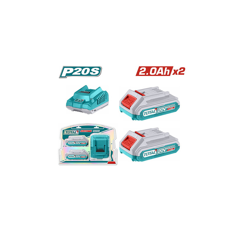 Total Σετ 2 Μπαταριών Εργαλείου Λιθίου 20V/ 2Ah Με Φορτιστή TFBCPK1222E