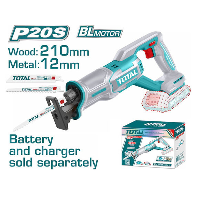 Η Total TRSLI2108 είναι σπαθοσέγα μπαταρίας 20V, σχεδιασμένη για εργασίες κοπής σε ξύλο και μέταλλο με σταθερή απόδοση και ευκολία χειρισμού. Διαθέτει κινητήρα brushless, ο οποίος προσφέρει μειωμένη φθορά, μεγαλύτερη αντοχή στον χρόνο και πιο αποδοτική λειτουργία.